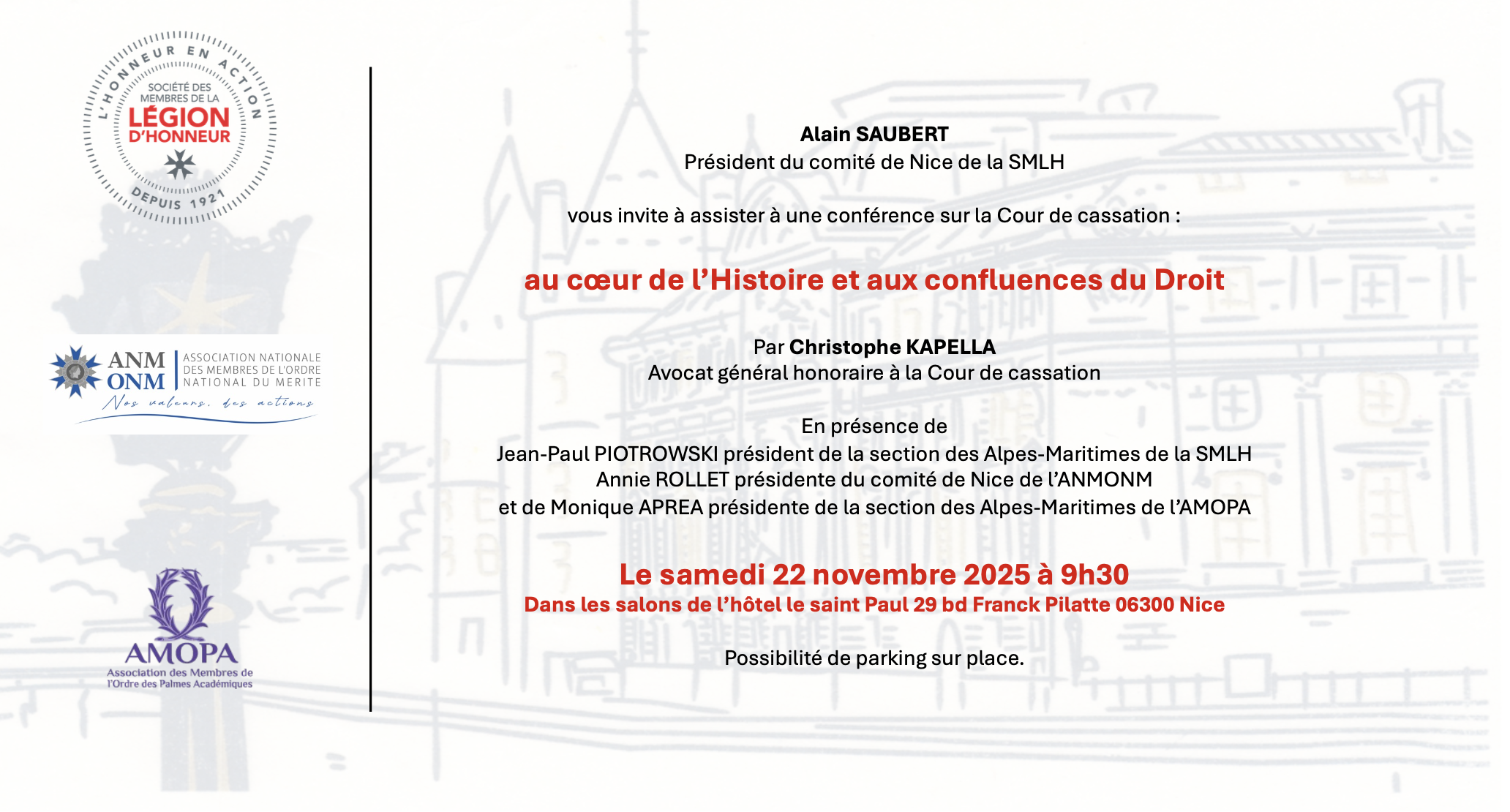 Le comité de Nice de la Société des Membres de la Légion d'honneur (SMLH), sous la présidence d'Alain SAUBERT, a l'honneur d’organiser une conférence exceptionnelle intitulée :